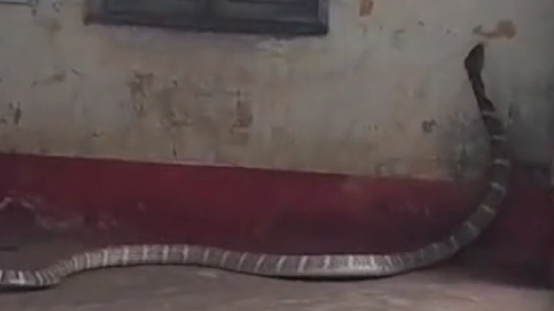 As per reports, some locals spotted the King Cobra in the post office in Hadagarh. Soon, many others join them to witness the huge reptile. Meanwhile, it was seen that some people pelted stones on the snake.