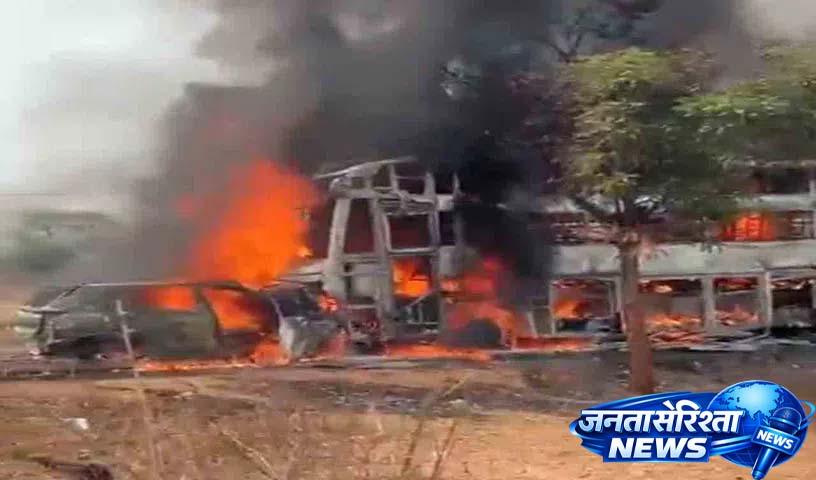 Bengaluru: A car that went out of control hit a travel bus. As a result, both the vehicles caught fire and were burnt. 9 people of the same family who were travelling in the car died. Four of the deceased were children. The incident took place in Karnataka’s Yadgir district. A serious road accident took place near Shantapur Cross in Surapur taluka on Friday afternoon. The tire of the car in which a family was travelling burst. The car that went out of control hit a private travel bus coming from the opposite direction. Immediately, the fire broke out. The car and the travel bus were completely burnt.