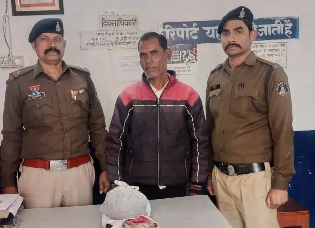 Raipur. A person who was supplying Ganja in Kharora area has been arrested. On receiving reliable information from an informant, a joint team of Kharora police party and cyber staff reached the place mentioned by the informant and laid siege to the place and caught the accused Vijay Kumar Sen while he was keeping the narcotic substance Ganja for illegal sale.