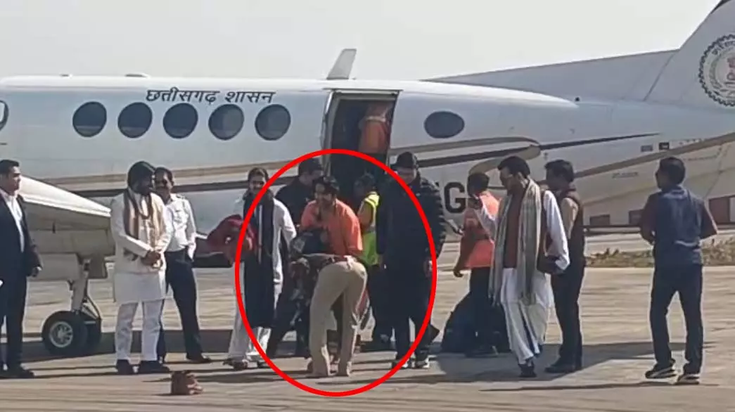 Raipur. A video has surfaced from Raipur, causing a stir in the police department. The video is reportedly linked to TI Manish Tiwari, who is posted in the Mana police station area. In the video, TI Manish Tiwari is seen at the State Hangar premises during his duty, where he is shown removing his shoes and cap and touching the feet of a religious leader. It is reported that this incident occurred while the officer was on official duty.
