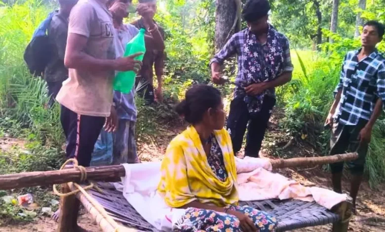 Due to the lack of a road in the village, the villagers carried her on a cot for about 10 kilometers on foot through mountainous roads to Eladamdagu. From there, the woman was brought to the Konta Community Health Center by bike ambulance. BMO Dr. Deepesh Chandrakar stated that the woman is undergoing treatment and her condition is stable.
