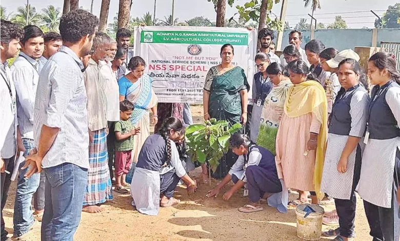 Tirupati: NSS volunteers from Acharya NG Ranga Agricultural University and Sri Venkateswara Agricultural College planted numerous saplings to promote greenery and protect environment in Adapa Reddy Palle village here on Thursday.