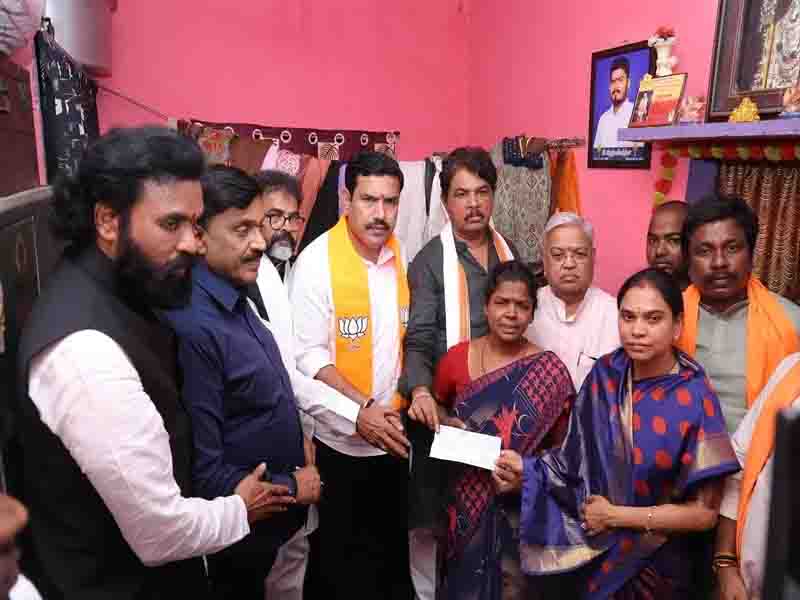 The BJP leaders met Rajasekhar’s family, including his mother, and handed over a cheque for Rs 10 lakh as compensation. However, Vijayendra emphasised that no amount of compensation can bring justice to the family.