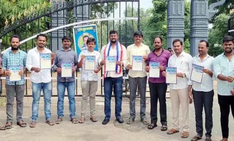 They released fee protest pamphlets at the first gate of KU on Saturday and spoke. They called on the entire student community in Telangana to join the fee protest like a swarm of ants and make it a success. They said that due to the state government not sanctioning Rs 7500 crore in fee reimbursement and scholarships, 22 students died due to mental breakdown due to the problems being caused by the private sector and not being able to afford their fees.