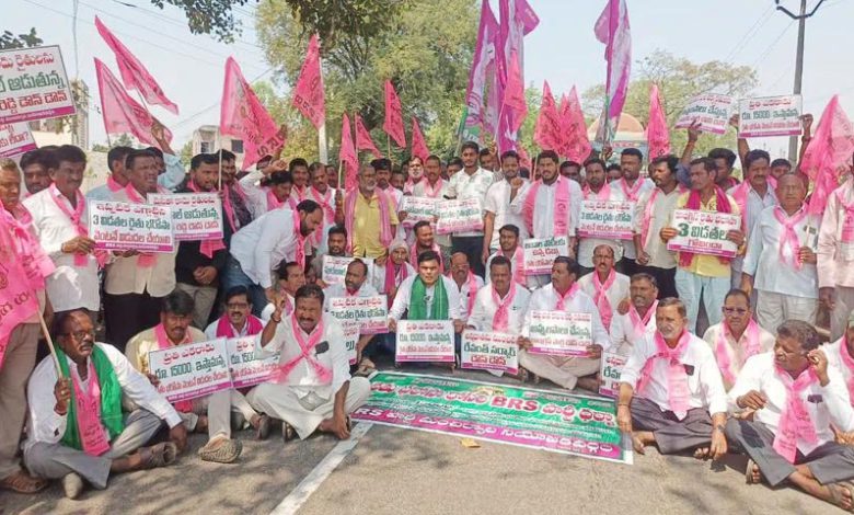 Dandepalli: BRS state leader Vijit Rao said that the Congress government in the state is working against farmers. Farmers and BRS cadres held a dharna at Dandepalli mandal center in Mancherial district on Saturday, demanding farmer assurance. They demanded the release of three installments of farmer assurance.