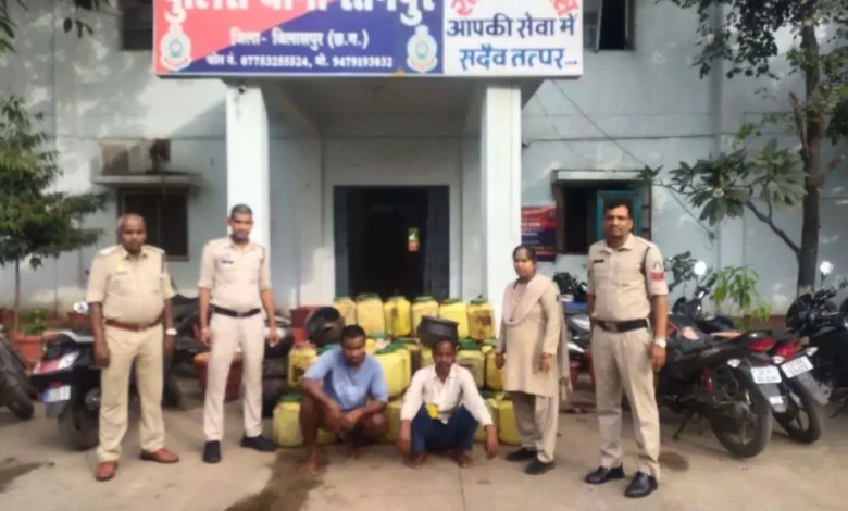 Bilaspur. Bilaspur. Ratanpur police, in a major crackdown on the illegal liquor trade, arrested two liquor vendors in the village of Bachalikhurd. Police seized 300 liters of raw mahua liquor, liquor-making utensils, and equipment from the accused. The estimated value of the seized liquor is approximately 60,000 rupees. This action is considered another major success in the district’s anti-drug campaign. According to information received, under the direction of Superintendent of Police Rajneesh Singh (IPS), a strict campaign is being launched across the district against the illegal liquor trade. In this regard, the Ratanpur police station in-charge, under the guidance of Additional Superintendent of Police (Rural) Archana Jha and Kota Sub-Divisional Officer Nupur Upadhyay, formed a special team.