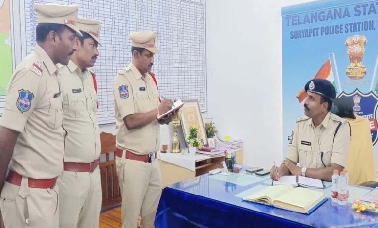 Suryapet District SP K. Narasimha has advised the staff to treat the complainants coming to the police station with courtesy and provide them with reassurance. The SP conducted a surprise inspection of the Suryapet Town Police Station on Friday. On this occasion, the police station surroundings, records, complaint management and the Commandant Control Center were inspected. Later, he spoke to the complainants who came to the police station and instructed the police officers to take prompt action on the complaints. He instructed to respond quickly as soon as information on public problems is received and to register cases from the victims. He said that they should be available to the public at all times through social programs and create widespread awareness on cyber frauds, road accidents and women’s safety.
