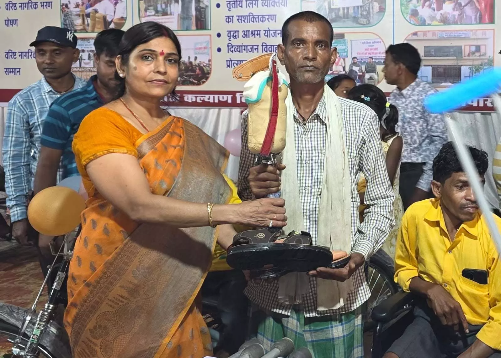 Baloda Bazar. Thanks to a commendable initiative by the District Contact Center, Manoj Adil (father of the late Ajuram Adil), a resident of Tarenga village, Bhatapara tehsil, was provided with a prosthetic limb. Adil had been facing difficulties in performing daily activities for a long time due to the lack of a prosthetic limb. He registered his problem on the mobile number of the Contact Center located at the Joint District Office.