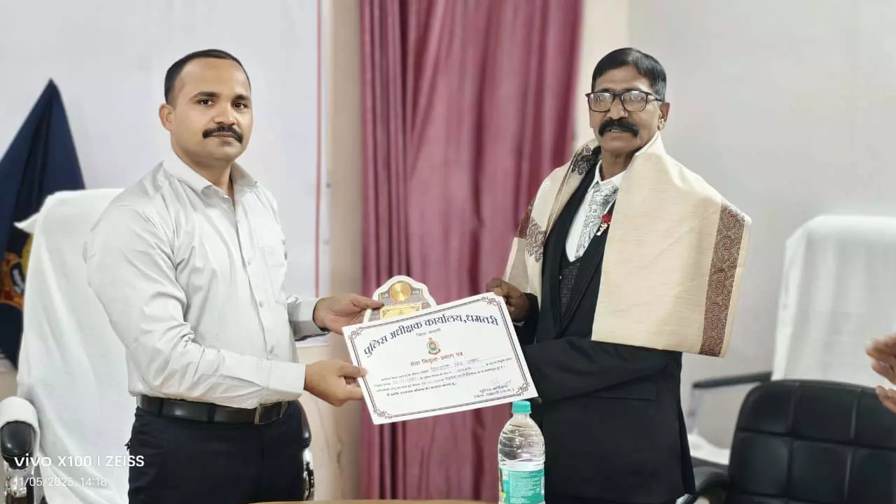 Dhamtari. Assistant Sub-Inspector (Sub-Inspector) Dilharan Singh Thakur, a senior member of the police family, was given a respectful farewell today for his long, exemplary, and dedicated service. Recruited as a constable in Raipur district in 1983, he served the department continuously for 42 years, 03 months, and 11 days. During his service, he was posted at various police stations and offices and always discharged his duties with discipline, dedication, and honesty.
