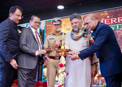 Shivakumar arrived two hours late for the United Christmas celebration as he had taken responsibility for the protest held at Freedom Park earlier in the day.