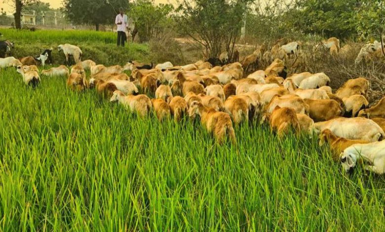 With no water in the ponds or groundwater levels dropping, the crop fields are drying up. This is worrying the farmers. Farmer Ranga Venkatesh of Pamukunta village in Rajapet mandal has taken the agricultural land of Samala Murali on lease and cultivated paddy. He invested Rs. 60,000 in three and a half acres and cultivated it. The ponds on the outskirts of the village have dried up due to lack of water, and the groundwater has dried up, leaving only one borehole for irrigation. The paddy field, which was in the early stages of the crop, has already dried up to half. With nothing to do, the farmer has left the dried crop field for sheep and cattle.