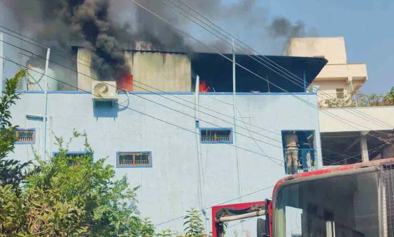 A fire broke out on Thursday in the sheet shed above the house of TNGO District President Ghadiaram Srihari in Gautami Nagar, the center of Mancherial district. According to the details given by the locals, they heard a sudden explosion sound above the house, which immediately caused smoke to rise and a fire to break out. They informed the fire department personnel and the police.