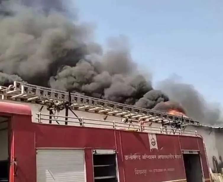 Bilaspur. A massive fire broke out at Anav Industries in the Tifra Industrial Area of the district. The entire building of this paint and putty factory is engulfed in flames. Fire crews are present at the scene and efforts are underway to control the fire. The cause of the fire is currently unknown.