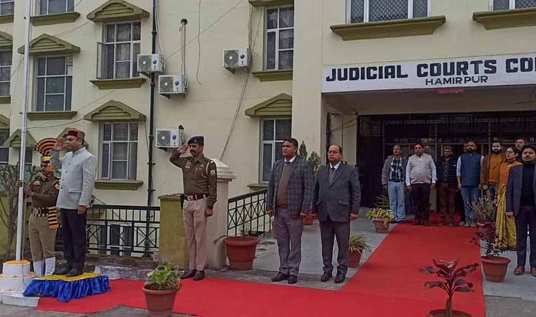 Himachal Pradesh: The 77th Republic Day was celebrated at all three judicial complexes in the district – Hamirpur, Barsar, and Nadaun – with the national flag hoisted at each location on Monday. At the Hamirpur District Judicial Complex, District and Sessions Judge Bhuvnesh Awasthi unfurled the national flag. Present on the occasion were Additional District and Sessions Judge Sachin Raghu, Chief Judicial Magistrate Surya Prakash, Additional Chief Judicial Magistrate Ravi Kumar, Secretary of the District Legal Services Authority Kuldeep Sharma, along with other judicial officers, staff members, office bearers of the District Bar Association, lawyers, and other dignitaries.