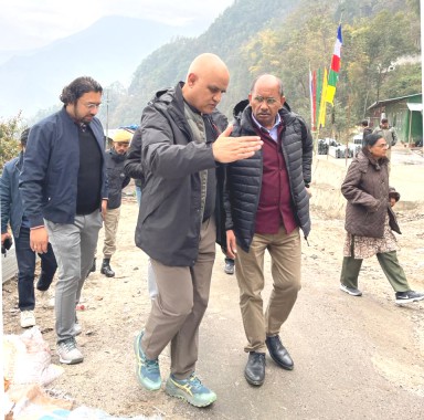 The SSDMA team was led by SSDMA Director Rajiv Roka and assisted by Deputy Director Keshav Koirala. They were accompanied by Mangan SDM Sandeep Kumar, Chungthang SDM Arun Chhetri, Kabi SDM Monika Rai, Mangan DPO Karma Dorji Bhutia, and officials from various line departments, who provided detailed sector-wise information during the field inspection.