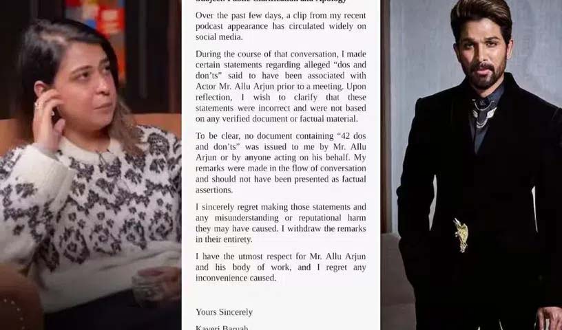 In this context, Kaveri Barua backtracked. On February 15, she posted a public apology on social media platform X (Twitter). She admitted that there was no evidence for her comments and that they were wrong. She said that she regretted making unnecessary allegations against Allu Arjun. Although the post did not receive much attention at first due to her low following, it later went viral.