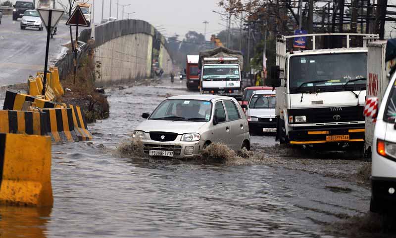 Jalandhar: Heavy rains accompanied by thunder and lightning since late yesterday evening brought down the maximum temperature by seven degrees Celsius from 21 degrees Celsius. The rains were also accompanied by cold winds. Hailstorm was also reported from some surrounding areas, including Dhilwan and Sultanpur Lodhi. Despite claims of improved drainage, waterlogging returned. Moderate to heavy rainfall lashed the area from last night until this afternoon, inundating several areas, including the posh Model Town, Urban Estate, and New Jawahar Nagar. Entering shops became so difficult that shopkeepers had to place concrete slabs for customers. The entrances of the famous Flower Point and Six 96 Baker Cafe were heavily waterlogged, and their staff had to stand outside to take orders and make deliveries.