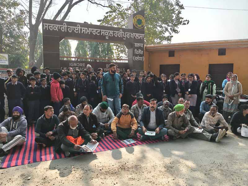 Jalandhar: Residents, parents, and members of the village panchayat locked the government high school in Haripur Khalsa village today. They staged a protest on the road against the shortage of staff at the school. The protesters included parents of students, members of the village panchayat, and members of the school management committee. The protesters demanded more teachers for the school ahead of the board examinations. The protest coincided with a parent-teacher meeting and a “discussion on examinations” held at the school today. The school in Haripur Khalsa village, located on the Nurmahal-Phillaur road, has 108 students and five teachers. Earlier, a teacher of Class VI, who was formally on the school’s rolls, was transferred to a school in Sangrur. Ashok Kumar, a member of the school managing committee, said, “My own children study in Classes VI and X at this school. We have been able to upgrade the school’s infrastructure with the help of NRIs and donors.