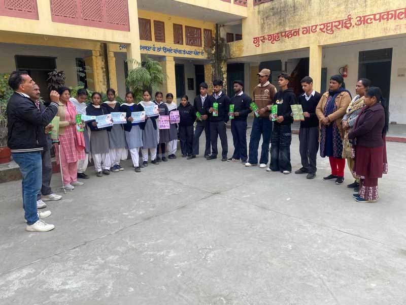 Jalandhar: The Mass Media Wing, in collaboration with the National Pollution Control Program, organized a health awareness program at Devki Nandan Sanatan Dharma Senior Secondary School in Nawanshahr. The program was conducted with the cooperation of the school principal, Kiran Handa Julka, and saw active participation from teachers and students. Deputy Education and Information Officer Tarsem Lal addressed the gathering and highlighted the importance of health awareness, stating that it is essential for every individual. He provided detailed information about various government health programs, including free treatment for snake and dog bites, hepatitis and AIDS control programs, the National Vector-Borne Disease Control Program, immunization initiatives, and other public health schemes.