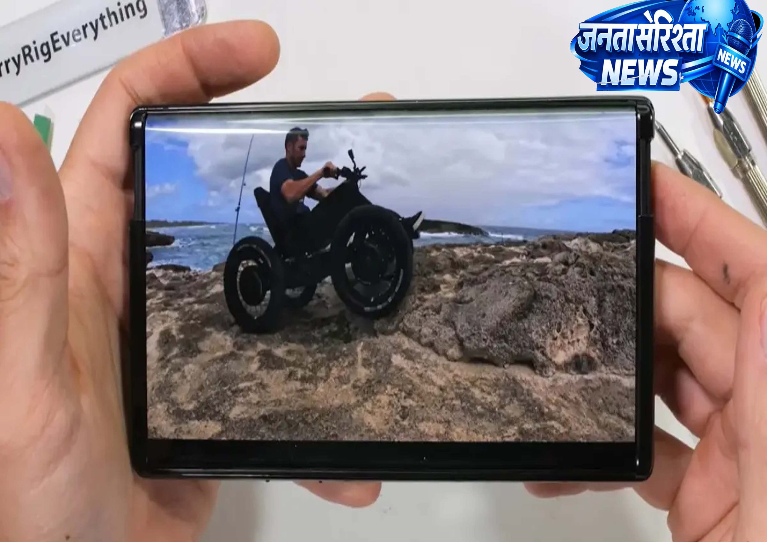 One of the biggest surprises is how complete the phone looks. This was not just a concept. The device includes a large battery, dual cameras, a fingerprint scanner, and a polished software experience that adapts as the screen expands. It even hides part of the flexible display under a glass back panel, reducing exposure and improving durability – something foldables still struggle with.
