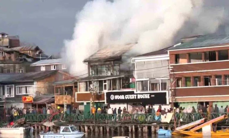 A major fire broke out in a guesthouse on the Dalgate coast in Srinagar. Firefighters, who were informed, reached the spot and are bringing the fire under control with the help of fire engines. According to the details of the Fire and Emergency Services Command.. According to the initial assessment, a fire broke out suddenly in a three-storey guesthouse called Dal Fog. There was heavy damage. The fire brigade personnel who reached the spot brought the fire under control in a short time.