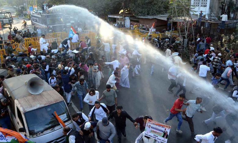 Madhya Pradesh: Congress leaders, led by state president Jitu Patwari, were marching towards the BJP office to protest the alleged misuse of investigative agencies when police stopped them and used water cannons to disperse them on Wednesday.