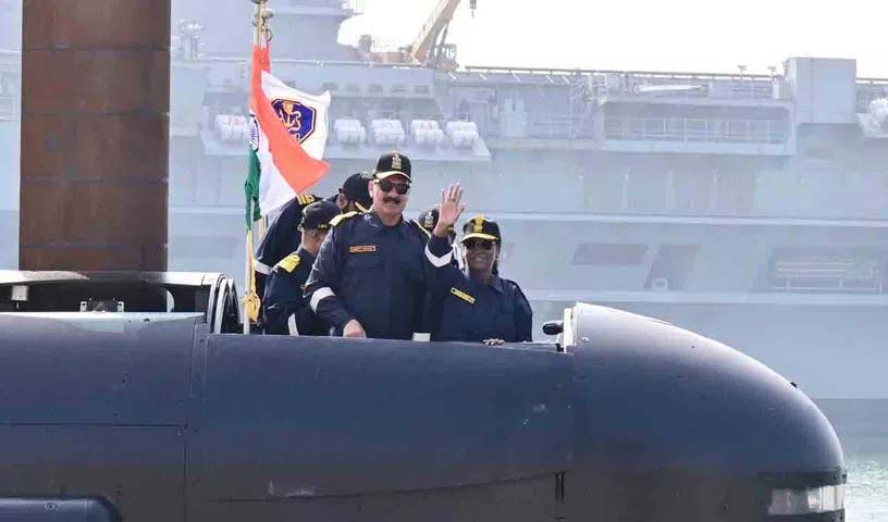 The country’s first lady and Supreme Commander of the three services, Draupadi Murmu, traveled in a submarine. She departed from the Karwar Naval base in Karnataka in the Kalvari series submarine INS Vaghsheer.