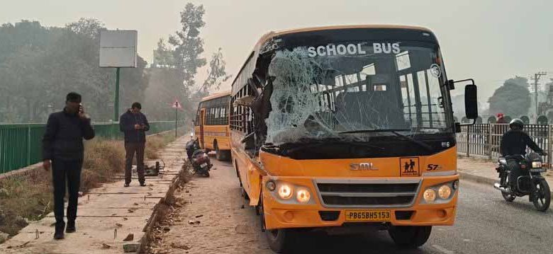 Punjab: Two school buses collided head-on in Kharar on Thursday morning amidst dense fog, resulting in minor injuries to two school bus drivers and several students. The injured received first aid at the scene, while the area was thrown into chaos for a short time before passersby came to their aid. The buses belonged to Delhi Public School and St. Ezra International School. Eyewitnesses said both buses were badly damaged in the accident. Dense fog has been prevailing in the Tricity area during the mornings and late evenings for the past two days. The Meteorological Department has predicted similar conditions in the coming days. Due to the biting cold, the Punjab government has announced the closure of schools at the end of December. As in previous years, December has seen a surge in road accidents due to low visibility caused by fog. Despite these recurring incidents, the government has yet to take any concrete preventive measures.