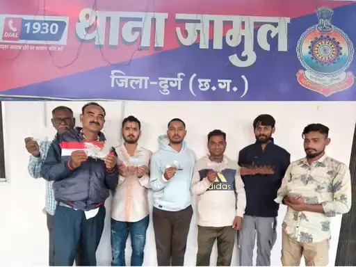 The arrested accused include Shekhar Dewangan (resident of Mahamaya Ward, Surdung village), Rama Baghel (resident of Kailash Nagar), Santosh Shukla (resident of Milan Chowk, Surdung), Jitendra Sahani (resident of Indira Nagar, Supela), Murli Sahu (resident of Jewra Sirsa), Rajesh Sahu (resident of Housing Board, Charoda), and Satyam Sahu (resident of Shiv Mandir, Jamul).