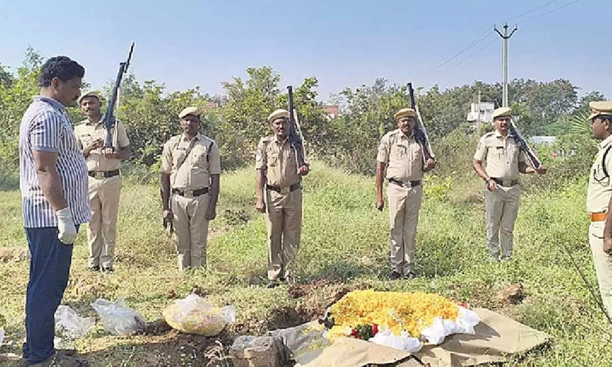 On the directions of District Superintendent of Police T Srinivasa Rao, last rites were performed with full police honours. RSI Chandrakant, Dog Handler Ravi Kumar, and Dog Squad personnel attended the ceremony, paid floral tributes, and offered a ceremonial salute as a mark of respect.