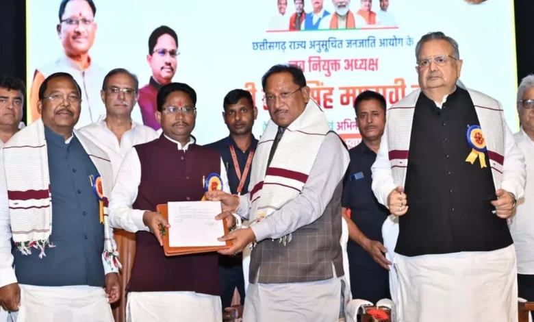 Raipur. The swearing-in ceremony of newly appointed Chairman of Chhattisgarh Scheduled Tribe Commission, Roop Singh Mandavi, was completed. CM Sai attended the ceremony and said, I have full faith that during the tenure of Roop Singh Mandavi as Chairman, better work will be done for the development of the Scheduled Tribe community of the state and protection of their constitutional rights.