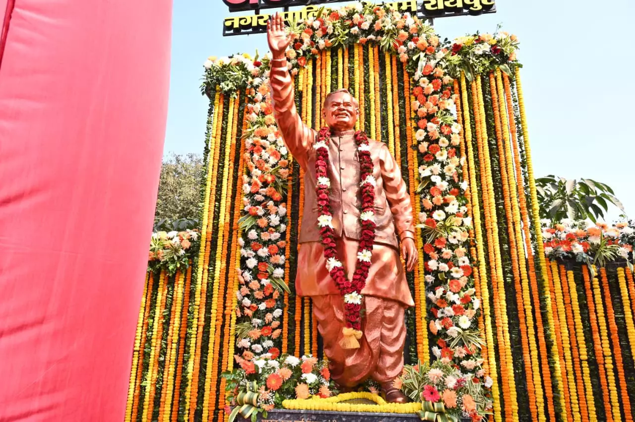 Raipur. A statue of Atal Bihari Vajpayee was unveiled at Fundhar Chowk. Chief Minister Sai said, “On the occasion of the birth anniversary of the architect of Chhattisgarh, Bharat Ratna, the revered Atal Bihari Vajpayee ji, I paid tribute to him and participated in the inauguration program of 115 newly constructed Atal Complexes across the state from the Fundhar sports ground in Raipur.