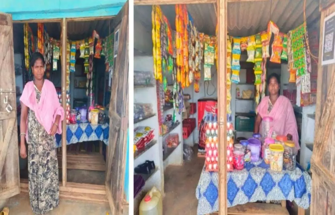 Through bank linkage, Shanti Dugga took a loan of Rs. 1 lakh from the group and started a grocery store business. Later, she took another loan of Rs. 2.70 lakh and started a clothing business. To expand her business activities, she also purchased a pickup truck. With the income generated, she consistently repaid the loan installments and interest on time.