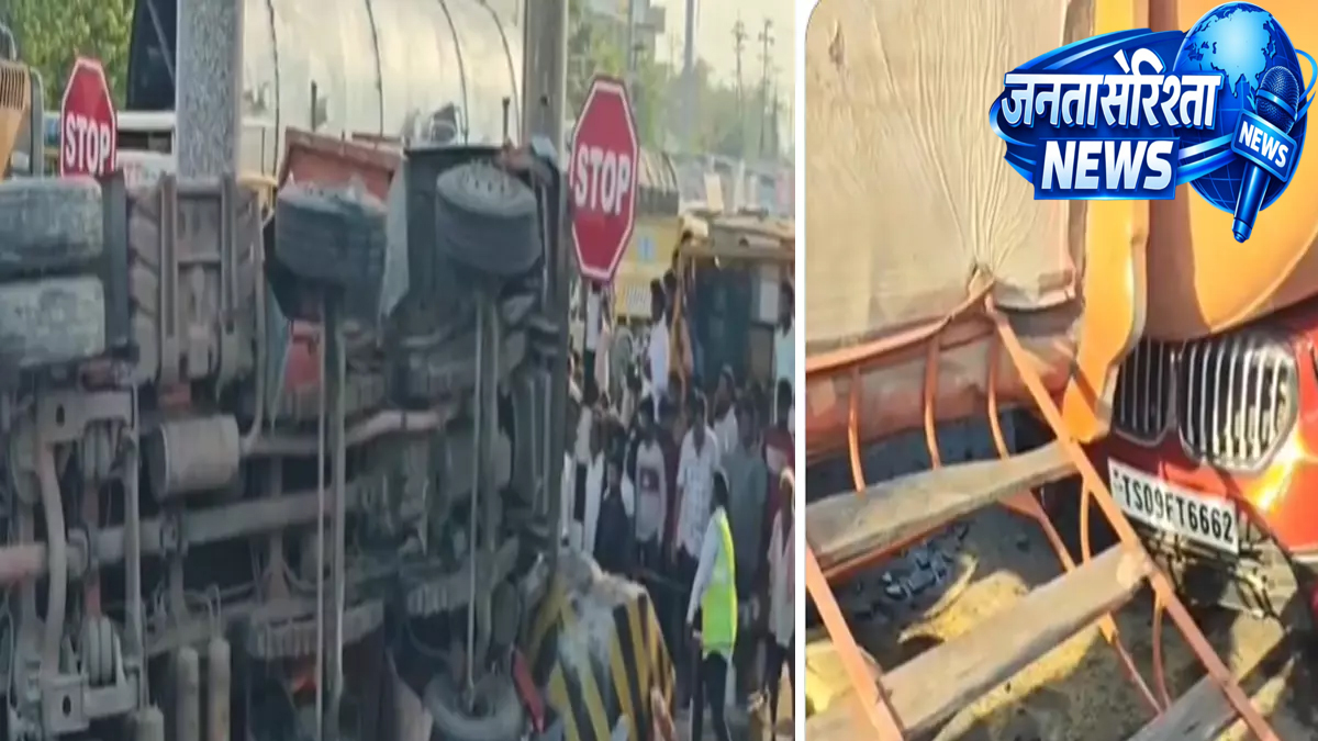 According to preliminary information, the gas tanker was heading towards Hyderabad. The driver suddenly lost control of the vehicle. It is reported that the brakes failed, causing the tanker to lose control and crash directly into a divider. Following the collision, the tanker overturned and landed on a passing BMW car.